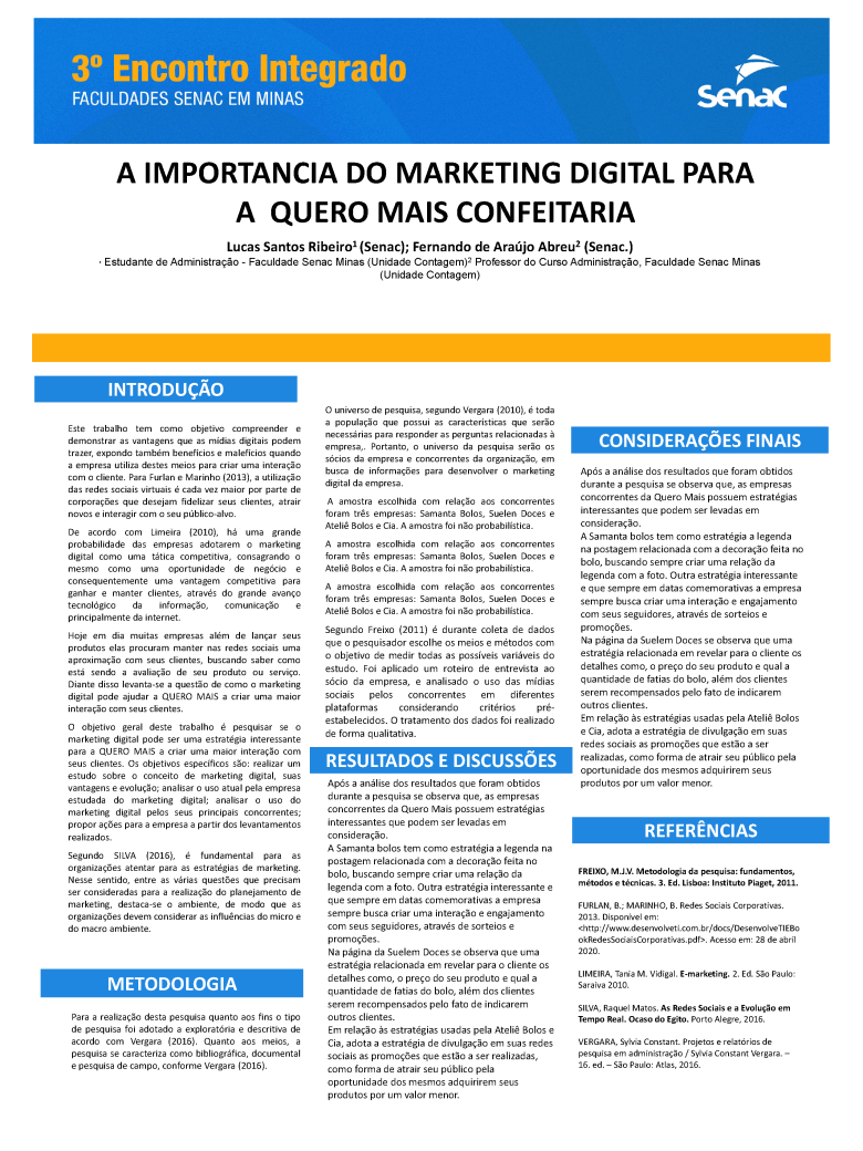 Trabalho acadêmico: 00_A IMPORTANCIA DO MARKETING DIGITAL PARA A QUERO MAIS CONFEITARIA. UNIDADE CONTAGEM