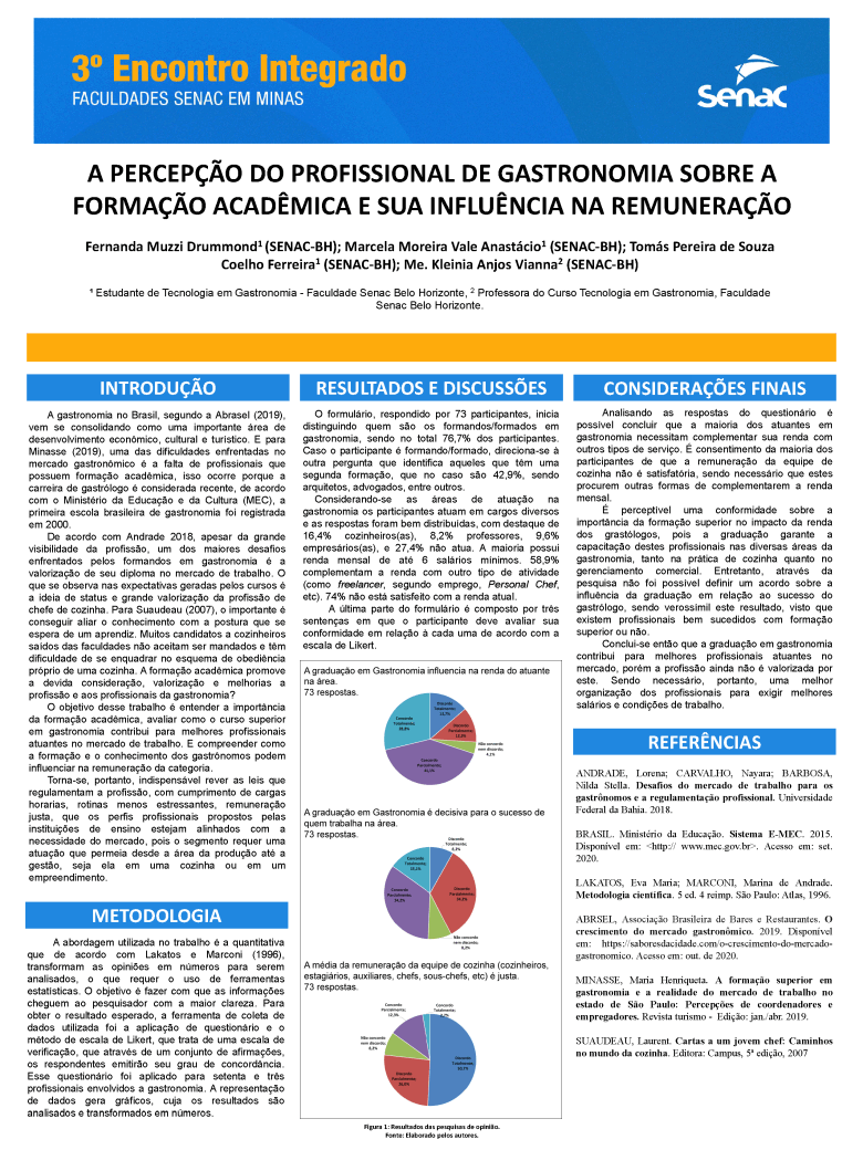 Trabalho acadêmico: 00_A PERCEPÇÃO DO PROFISSIONAL DE GASTRONOMIA SOBRE A FORMAÇÃO ACADÊMICA E SUA INFLUÊNCIA NA REMUNERAÇÃO. UNIDADE BELO HORIZONTE