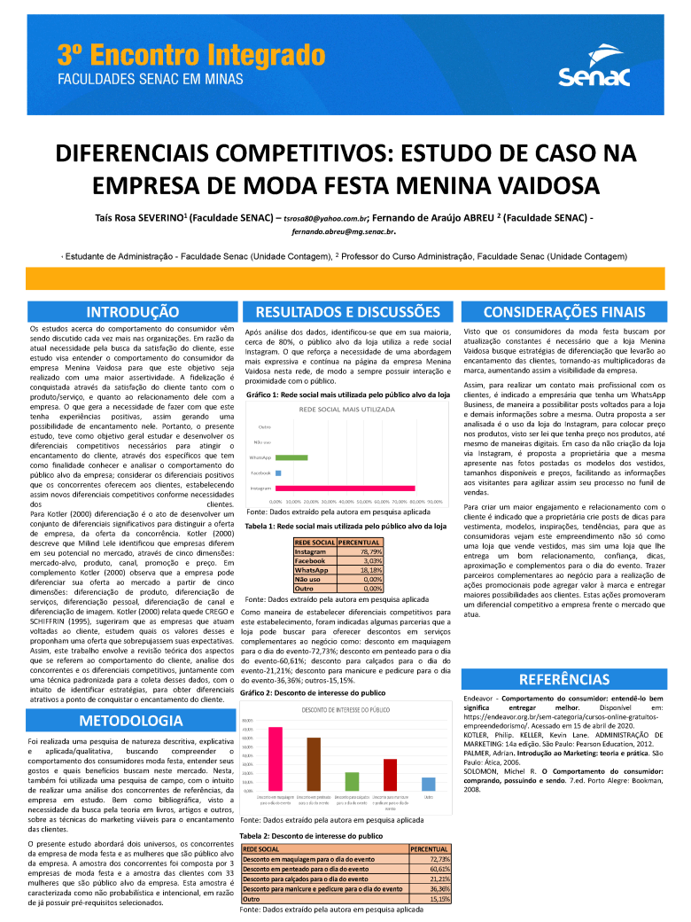 Trabalho acadêmico: 00_DIFERENCIAIS COMPETITIVOS ESTUDO DE CASO NA EMPRESA DE MODA FESTA MENINA VAIDOSA. UNIDADE CONTAGEM