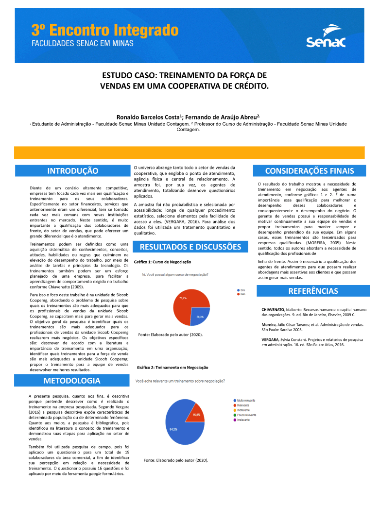 Trabalho acadêmico: 00_ESTUDO CASO TREINAMENTO DA FORÇA DE VENDAS EM UMA COOPERATIVA DE CRÉDITO. UNIDADE CONTAGEM