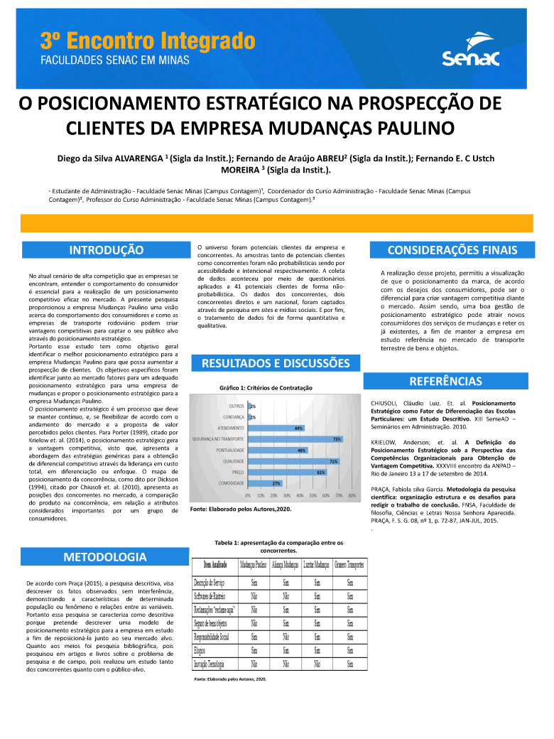 Trabalho acadêmico: 00_O POSICIONAMENTO ESTRATÉGICO NA PROSPECÇÃO DE CLIENTES DA EMPRESA MUDANÇAS PAULINO. UNIDADE CONTAGEM